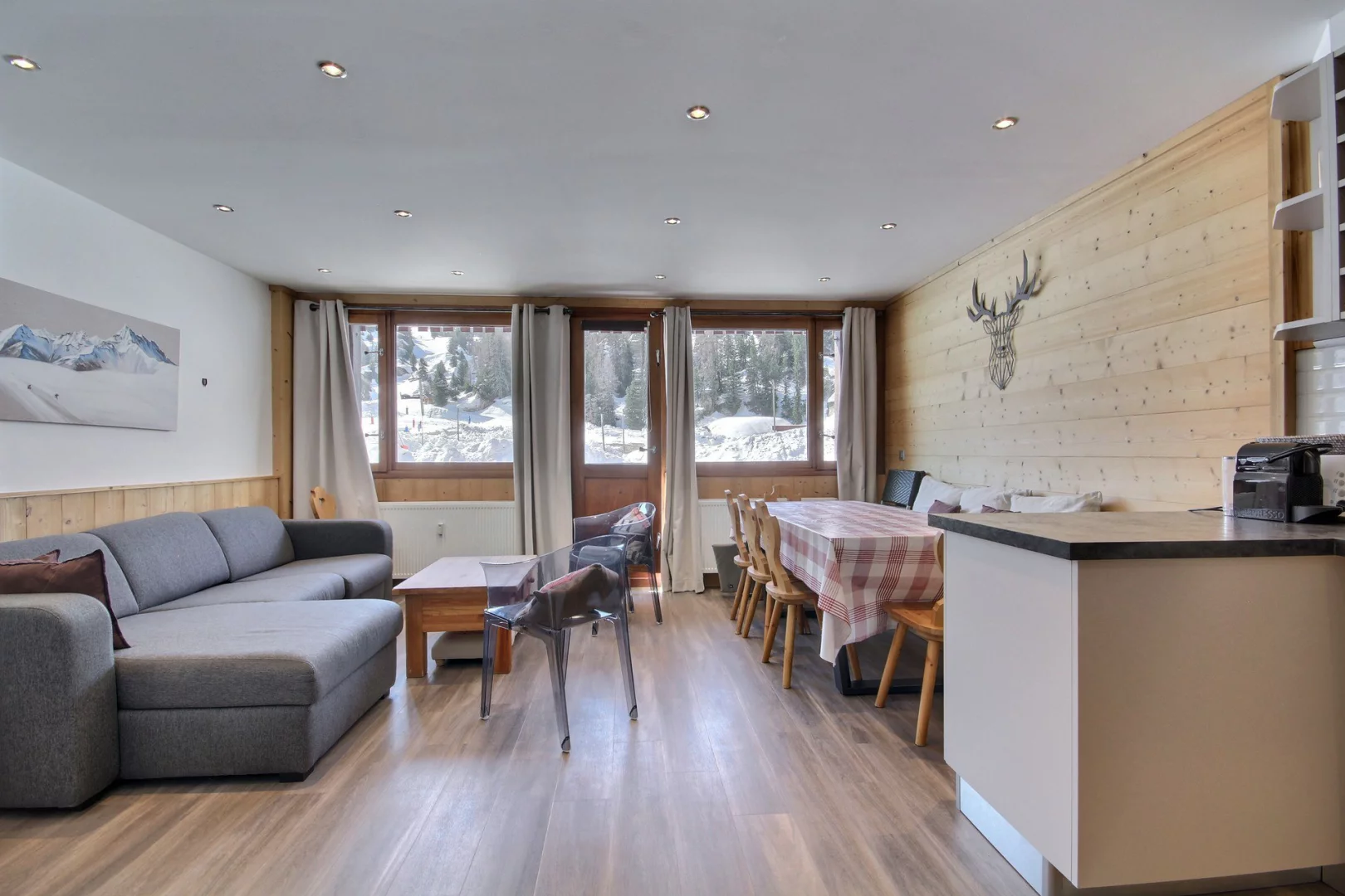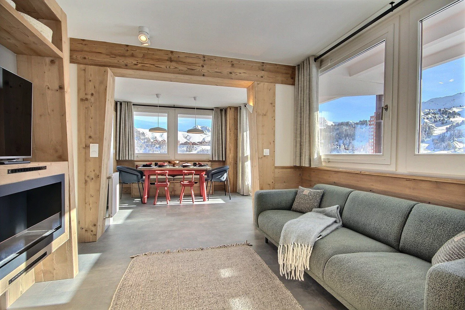 The Oxygène Immobilier team is on hand to help you find the La Plagne accommodation best suited to your holiday: studios, flats or chalets for 2 to 18 people, stylishly furnished and equipped for a relaxing ski holiday: balcony, terrace, fully-equipped kitchen with ceramic hob, oven, combi oven, dishwasher, Nespresso coffee machine, fireplace, television, bath, shower cubicle, sauna, heated towel rail, WiFi, covered car park, ski locker, residence with lift, etc.