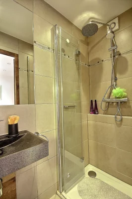 50 meters away from slopes and 600 meters away from shops