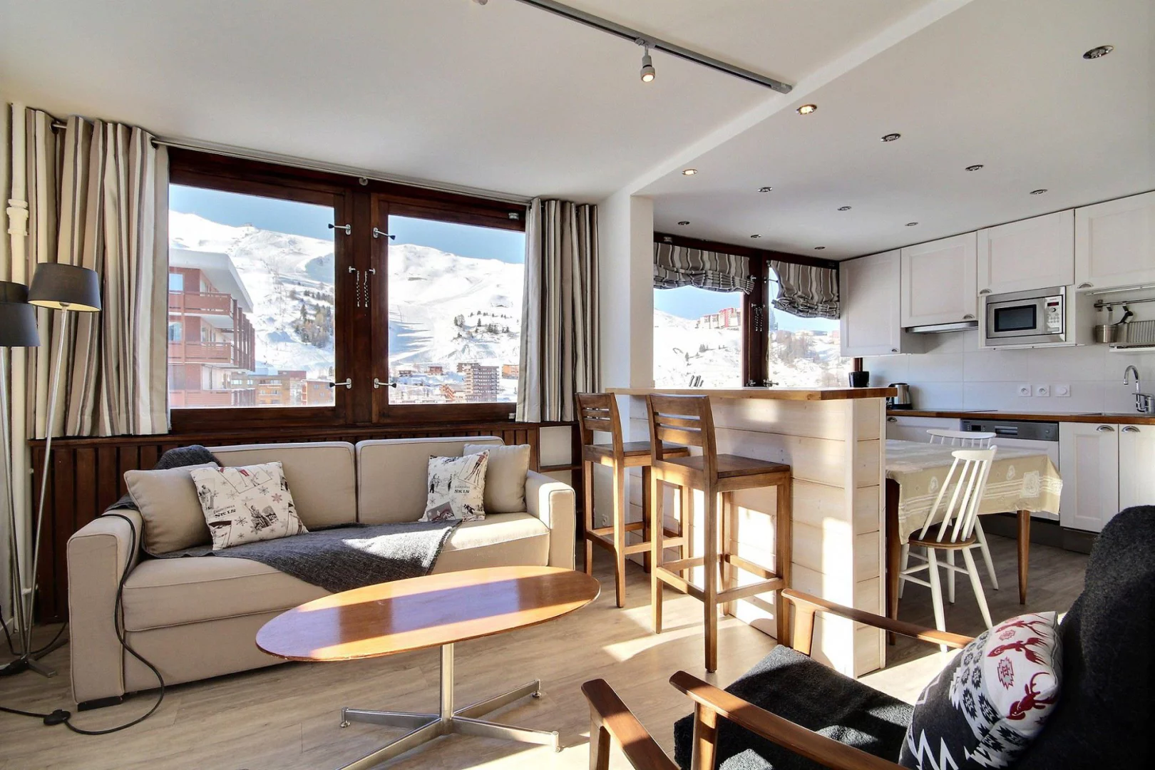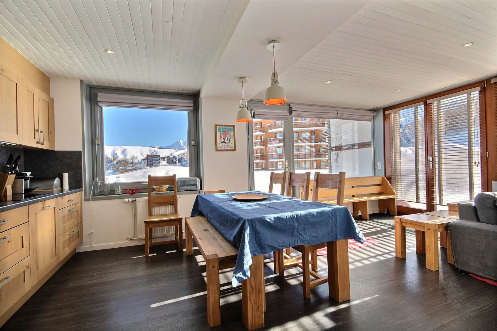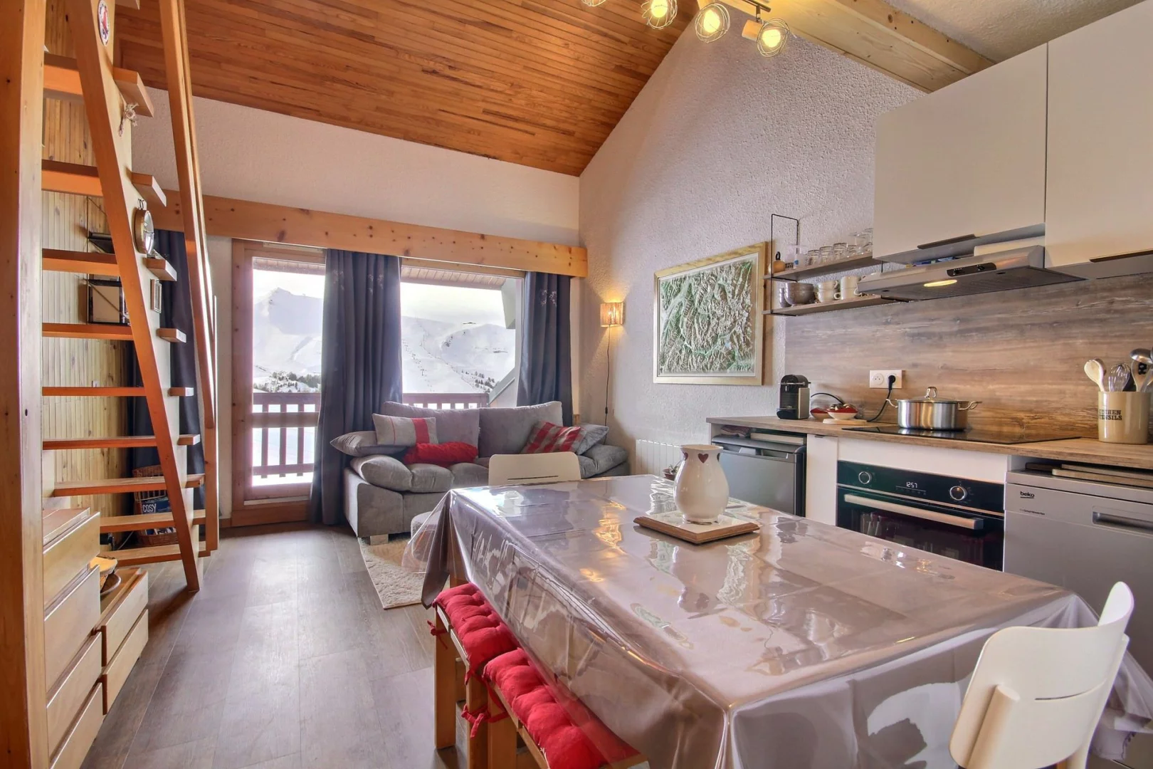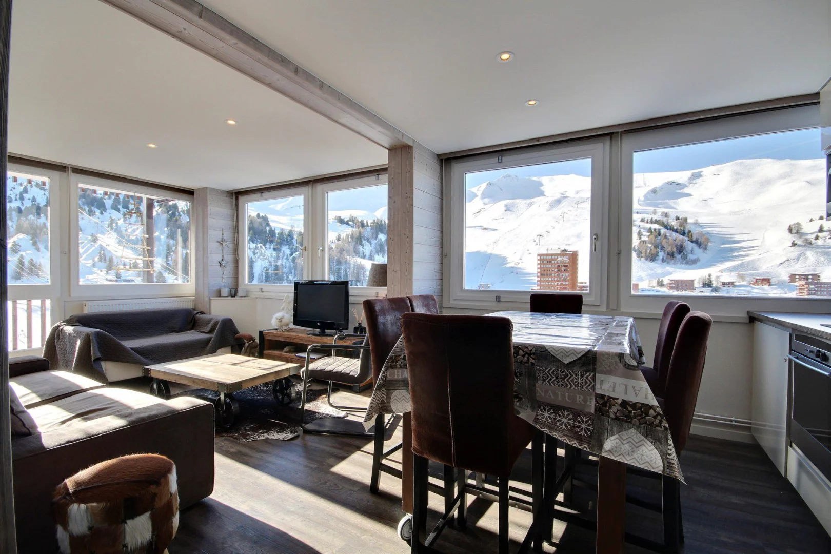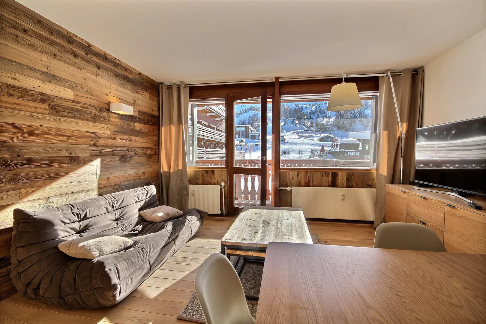 The Oxygène Immobilier team is on hand to help you find the La Plagne accommodation best suited to your holiday: studios, flats or chalets for 2 to 18 people, stylishly furnished and equipped for a relaxing ski holiday: balcony, terrace, fully-equipped kitchen with ceramic hob, oven, combi oven, dishwasher, Nespresso coffee machine, fireplace, television, bath, shower cubicle, sauna, heated towel rail, WiFi, covered car park, ski locker, residence with lift, etc.